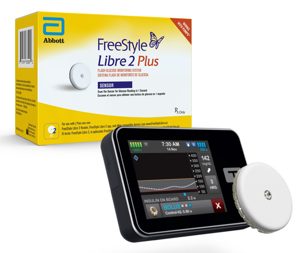 • When paired with the Tandem T X2, the FreeStyle Libre 2 Plus Sensor helps create an automated insulin delivery system (AID) to predict and prevent highs and lows.