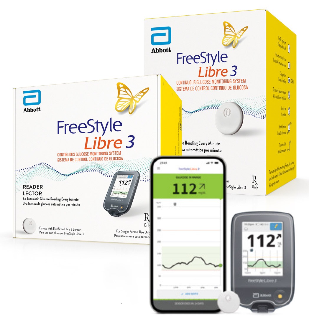 • Continuous glucose readings stream to the smartphone or FreeStyle Libre 3 reader.